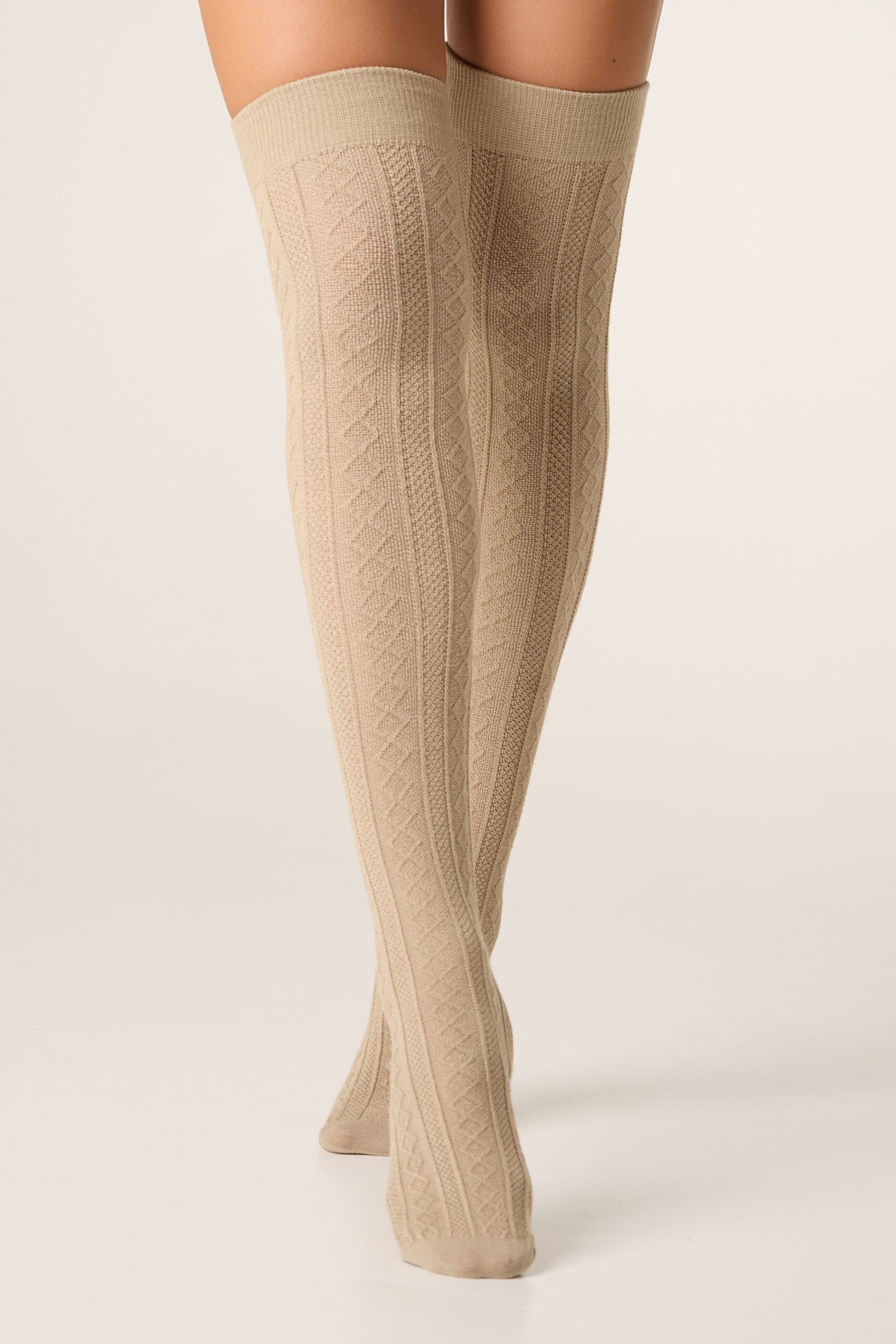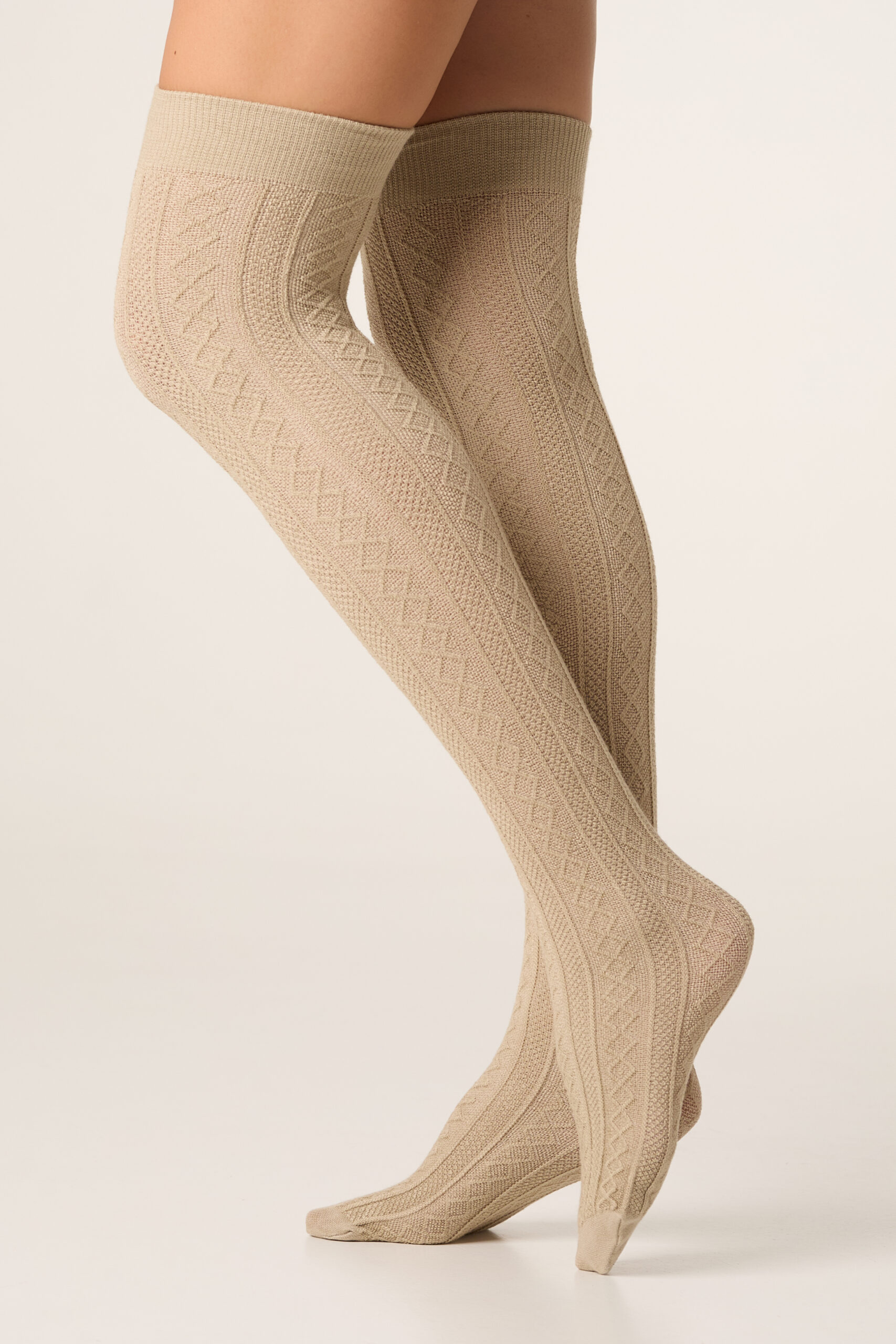 Bardzo kobiece wzorzyste zakolanówki w romby, idealnie podkreślające kształt nóg. Oryginalny wzór przyciąga wzrok i sprawia, że zakolanówki pasują zarówno do stylizacji domowych, casualowych, jak i tych na bardziej oficjalne okazje.