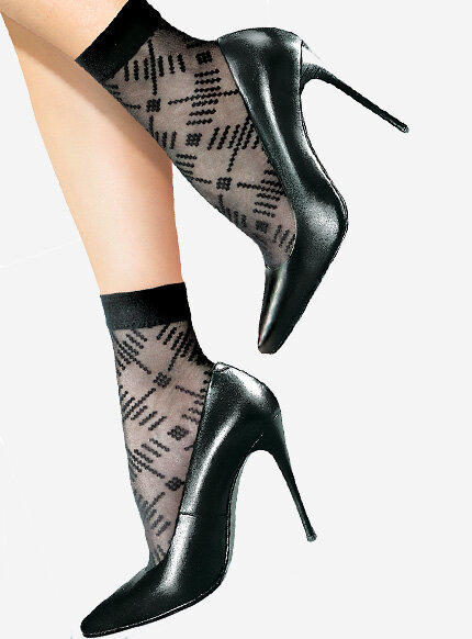 FELICIA to czarne skarpetki rajstopowe o grubości 20 den, zdobione bardzo nowoczesnym wzorem. Przyciągają uwagę, choć nie można odmówić im klasycznego charakteru, który pokochają zwolenniczki eleganckich zestawów. Lekki i delikatny materiał doskonale sprawdzi się w ciepłe dni, zapewniając skórze komfort termiczny.